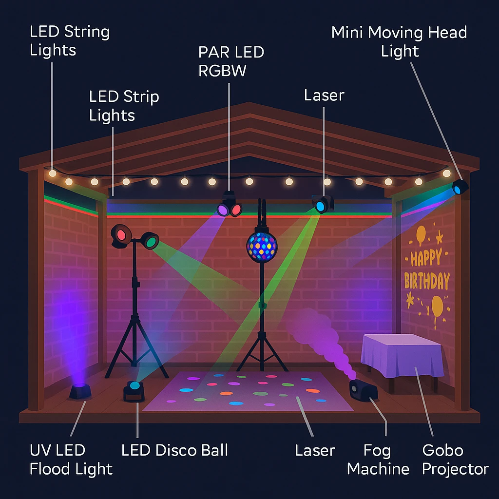 Equípate con todo lo necesario en luces para fiestas y eventos.