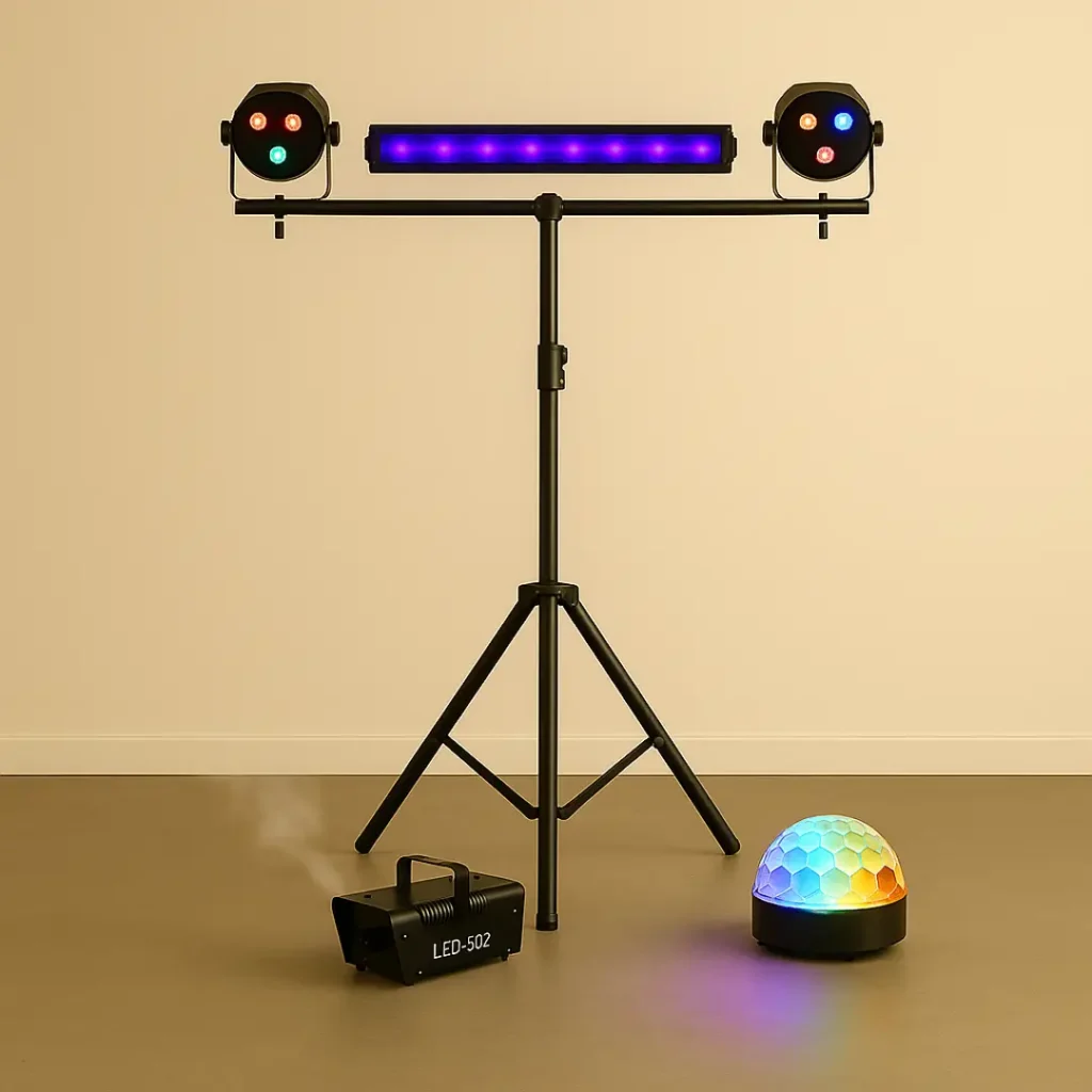 • 🌫️ Máquina de humo: Resalta los efectos de luz, creando una atmósfera más intensa. Ideal para combinar con láser o UV.