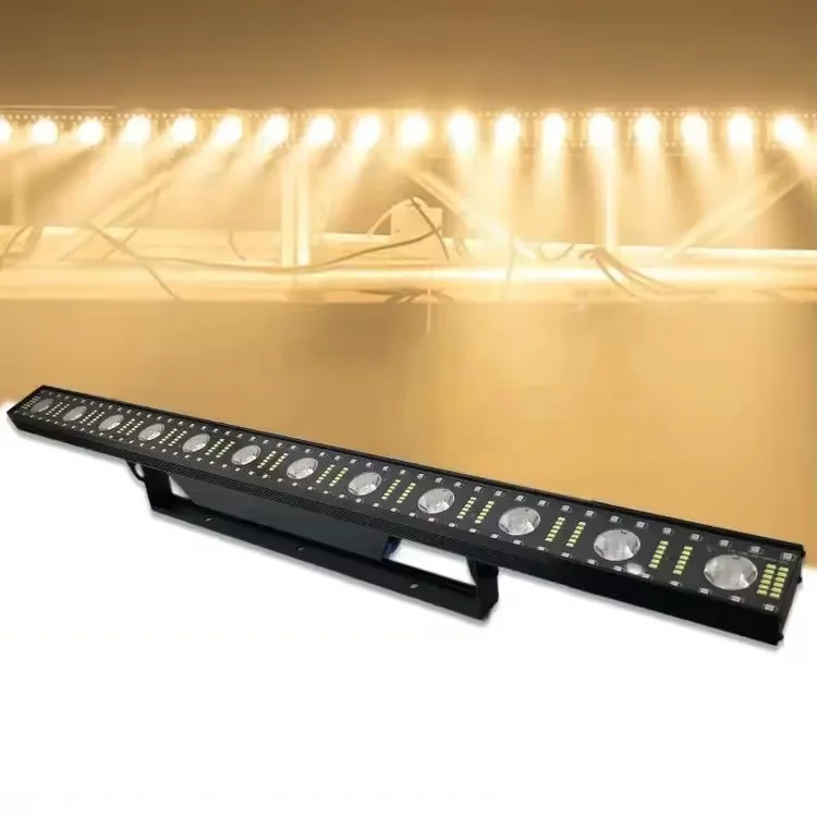 La barra LED color ámbar para escenarios está diseñada para iluminación escénica profesional, ofreciendo una luz cálida, uniforme y elegante. Es ideal para teatros, auditorios, presentaciones artísticas y escenarios donde la calidad de la luz es fundamental.