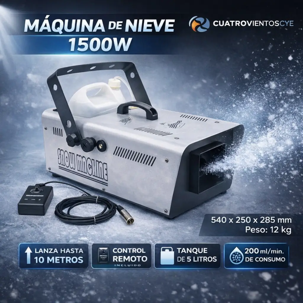 Si buscas una máquina de nieve potente, rendidora y de gran cobertura, este modelo de 1500W es una excelente opción para llevar tus fiestas y eventos a un nivel más profesional.